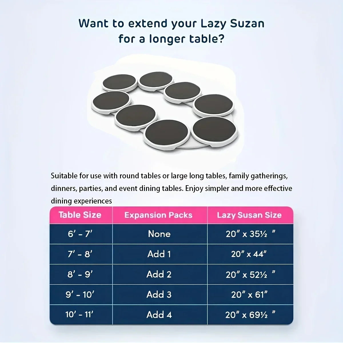 Whether it’s placed on a rectangular dining table, kitchen island or countertop, it helps reduce reaching across the table and makes sharing food more convenient.